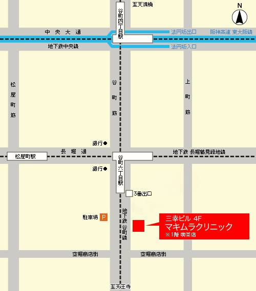 地下鉄谷町線・鶴見緑地線 谷町六丁目駅下車 3番出口より南へ徒歩2分